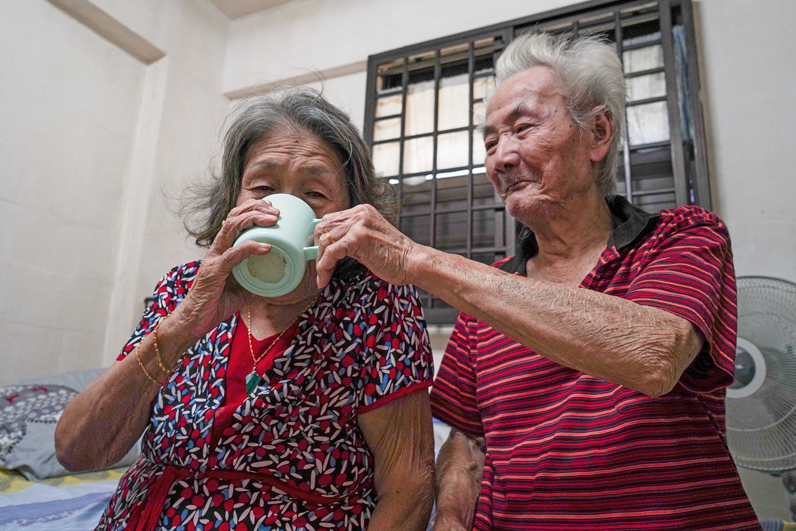 The shrinking of family sizes has dramatically changed the structure of our society, making it common for the elderly to look after each other. The community’s varying degrees of medical care and everday living care services are critical to this couple’s “survival” at home.